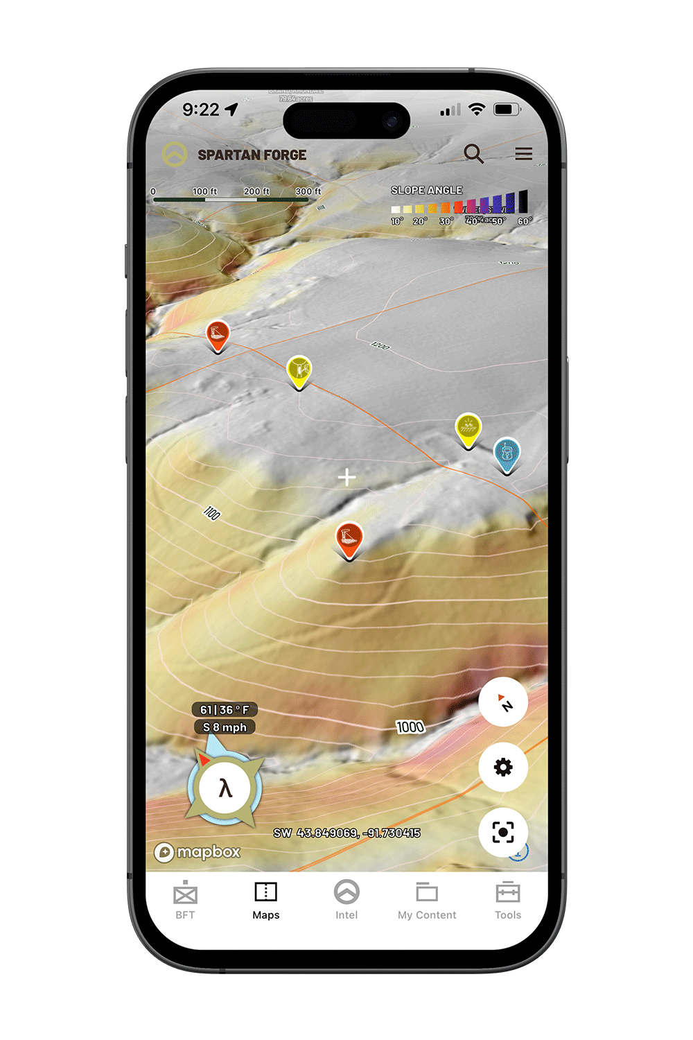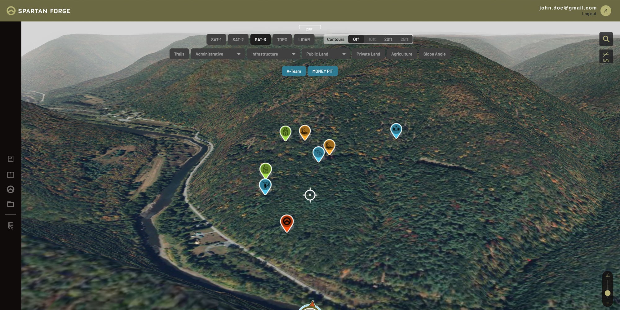 E-Scouting is taken to another level with the mapping tools that Spartan Forge includes; the sharpest imagery, 3D maps and the ALL-NEW LIDAR layer.